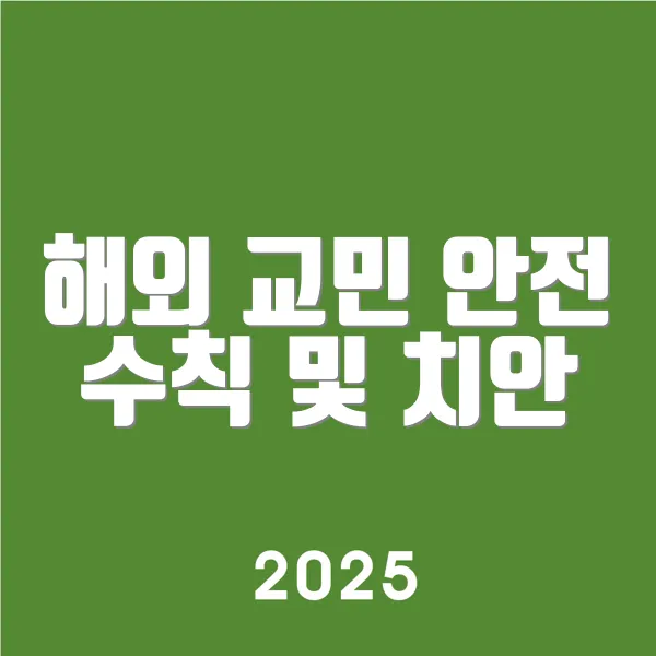– **교민 안전 수칙**: 해외 거주 및 여행 시 안전을 위한 행동 지침.
